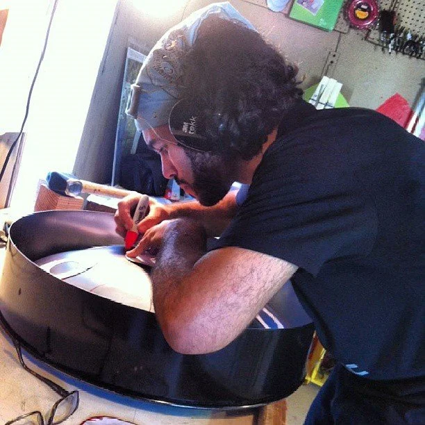 For a week, we worked through the basics. We sunk a 55-gallon barrel with the goal of making something he could take home to practice on. We tuned a few notes and left the others untouched—a blank canvas for him to explore on his own. I made him a tuning hammer, just like mine, and signed it for him.